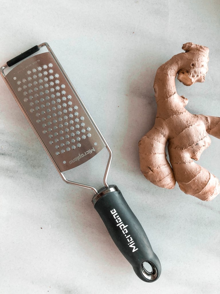Ginger has many health benefits. Therefore, it is recommended to add it to your daily (morning) routine. For me the most important one is that it can help you digest quicker (and as result feel less bloated). Furthermore, ginger has proven to boost your immunity, reduce pain, heal irritated skin and promote skin elasticity and smoothness (hence, it makes you look young(er) and fresh). In short, a ginger shot a day keeps the doctor away.